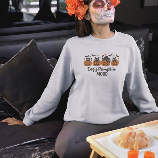 Cozy Pumpkin Mood Sweatshirt, Fall Sweater, Halloween Apparel, Unisex Crewneck, Autumn Fashion, Comfy Gift Idea